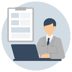 法律家と連携して専門的な書類を作成します。 給付金の額を決める大事な作業です。
